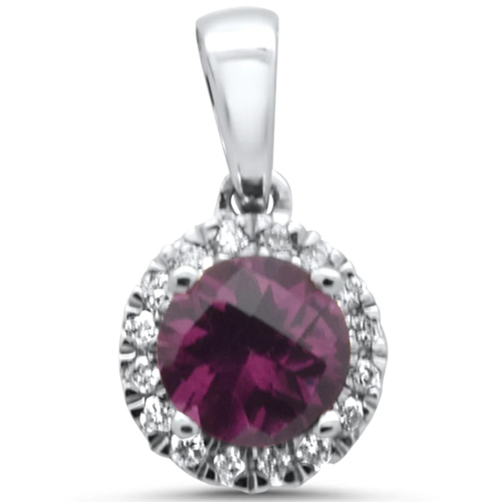 .62ct G SI 14K White Gold Diamond & Round Rhodolite Gemstone Pendant